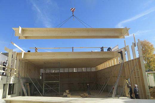 Moderner Holzbau im denkmalgeschützten Ensemble.