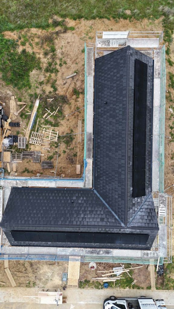 Wunderschönes Satteldach mit Anthrazitziegeln und PV-Anlage