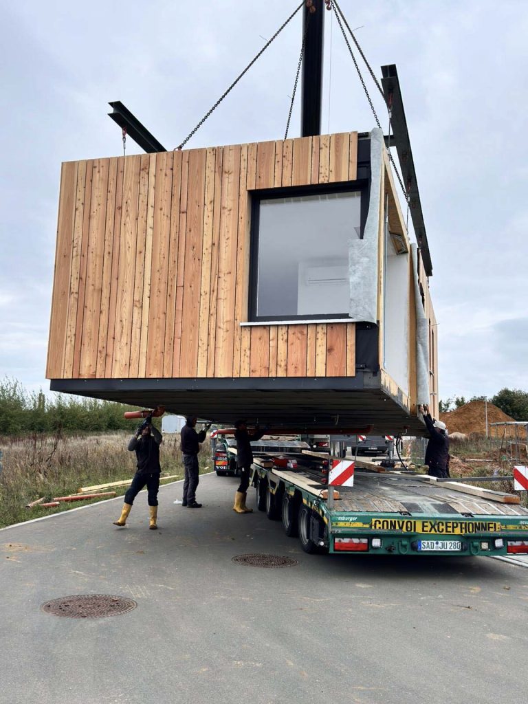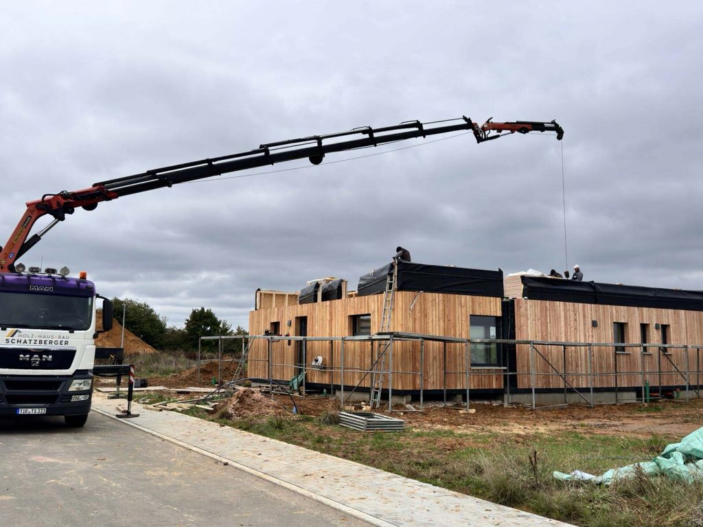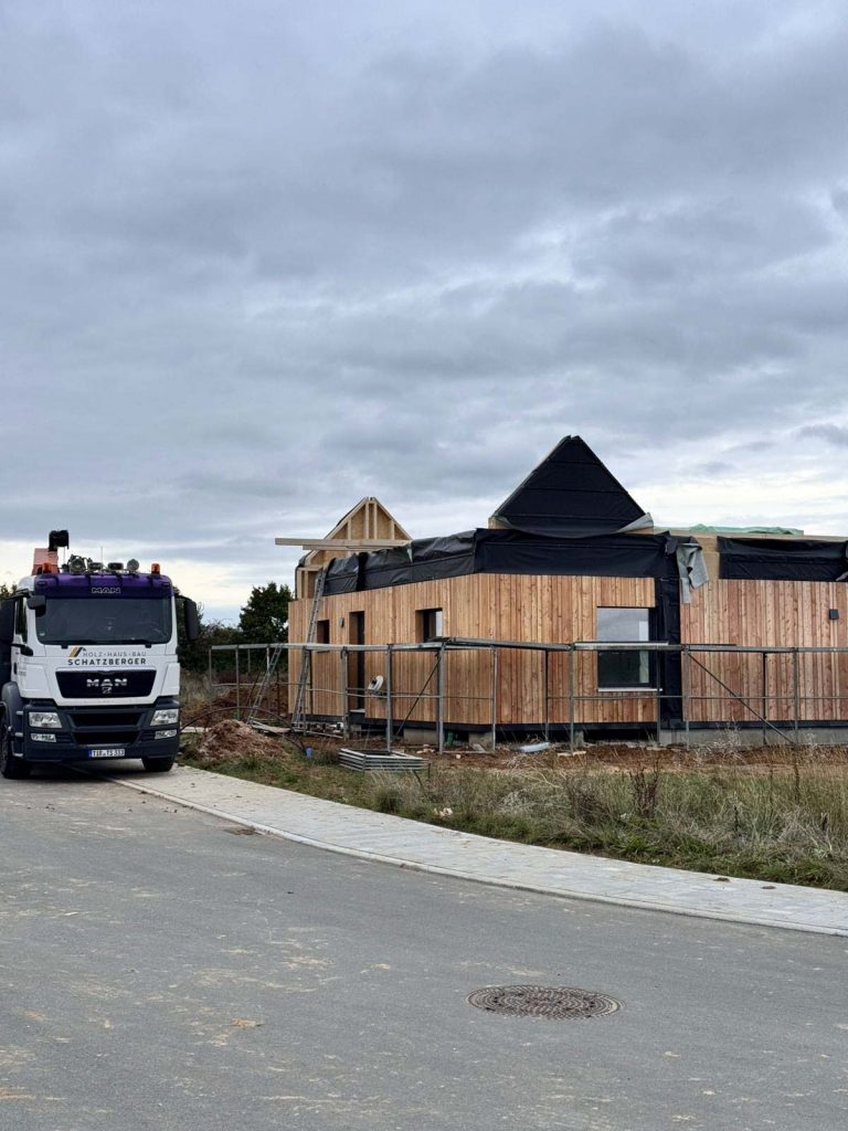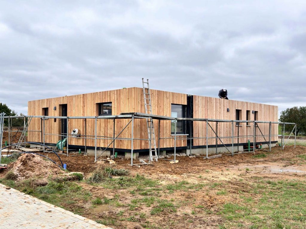 Modulhaus in L-Form mit Satteldach & ausgiebigem Stauraum.