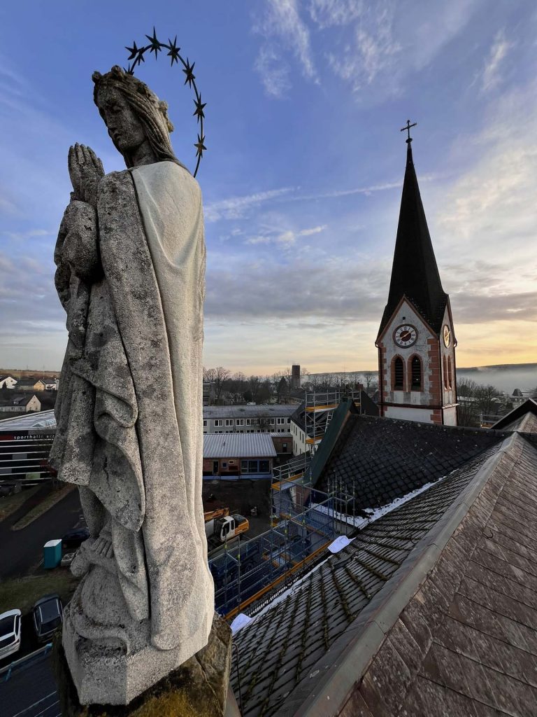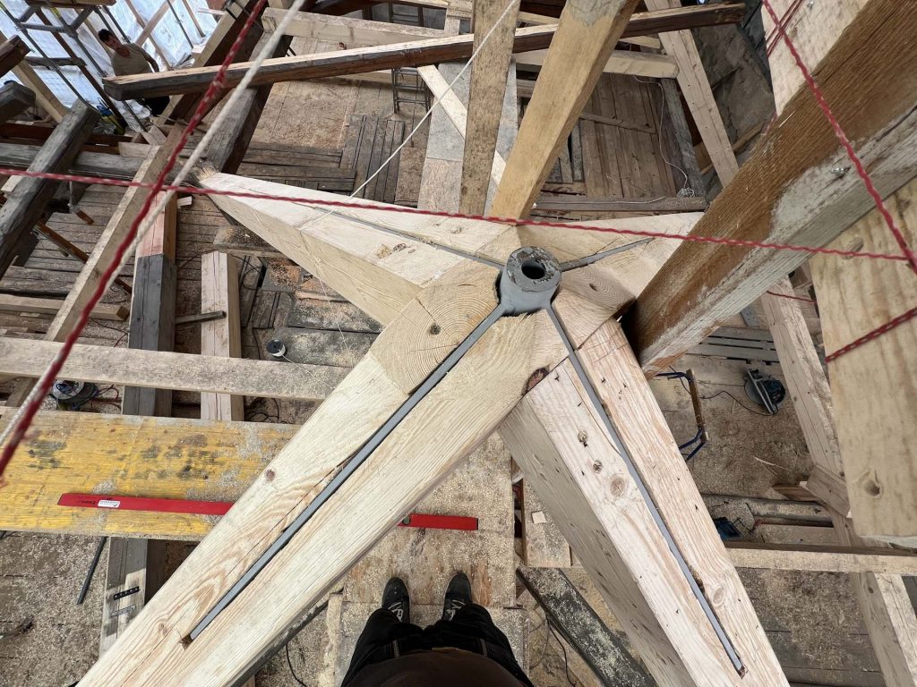 Sanierung der denkmalgeschützten Kirche Arzberg: Erneuerung des historischen Dachstuhls und statische Ertüchtigung mit präziser Handwerksarbeit.