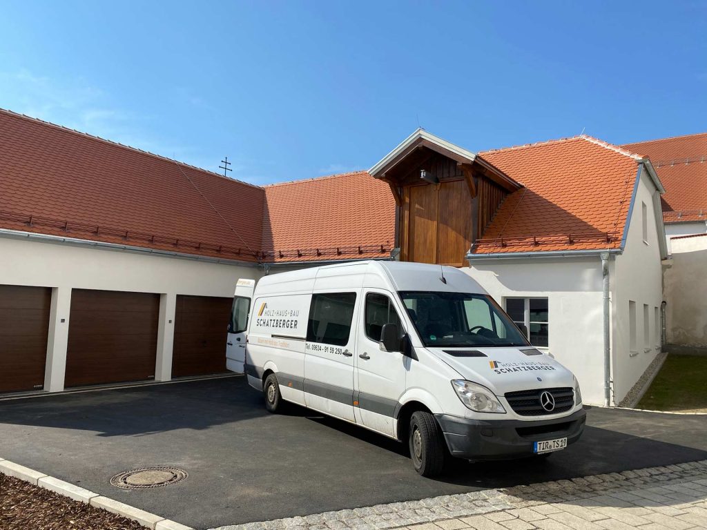 Zimmermannsmäßiger Dachstuhl als "Walmdach" abbinden, liefern und aufrichten.