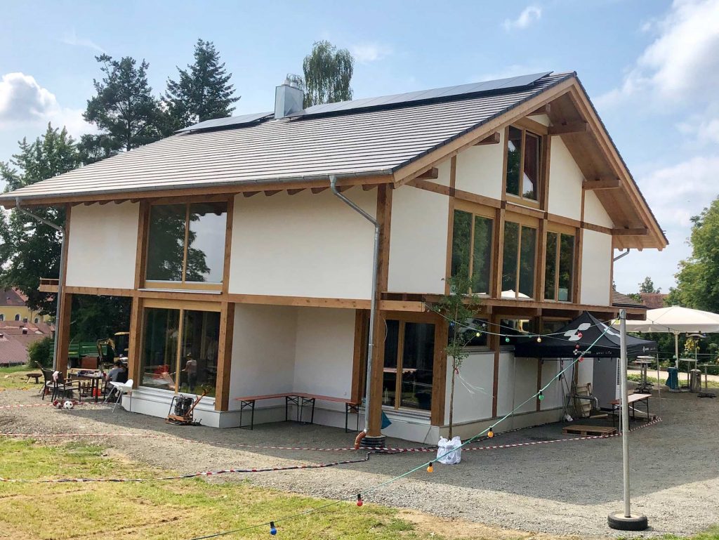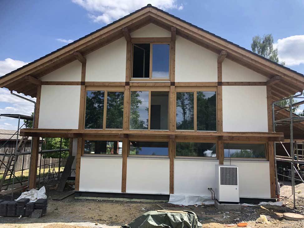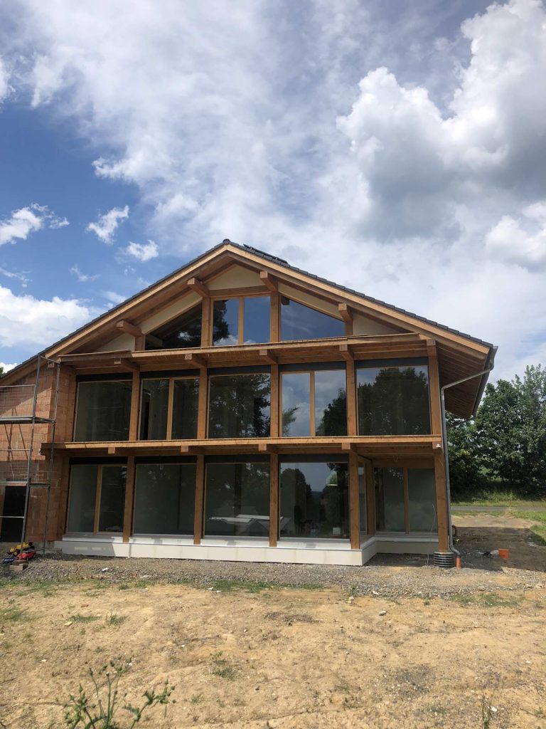 Einfamilienwohnhaus ins Holzständerbauweise mit großen Glasflächen