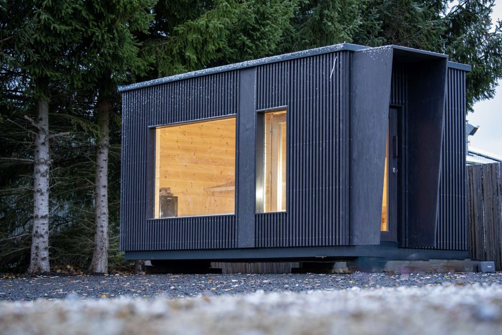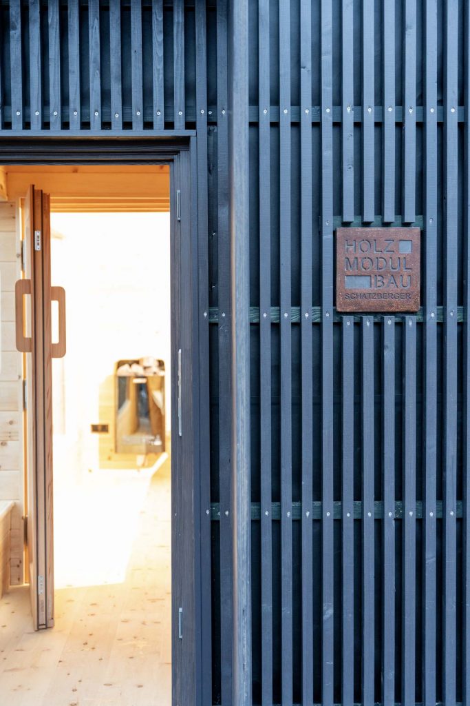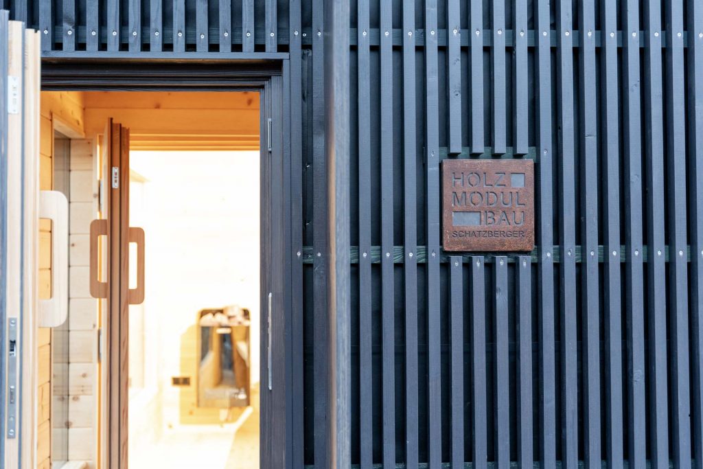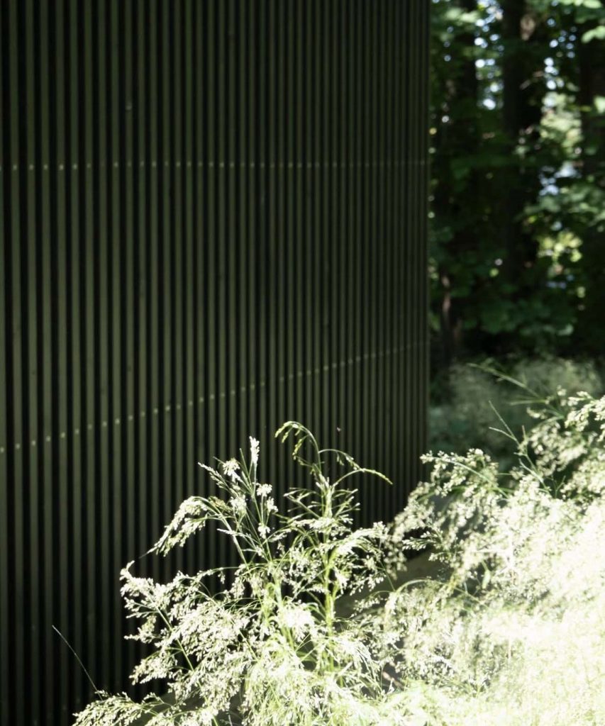 Fassade als Fichtenfassade, anthrazit lasiert für den nötigen „Blickfang“