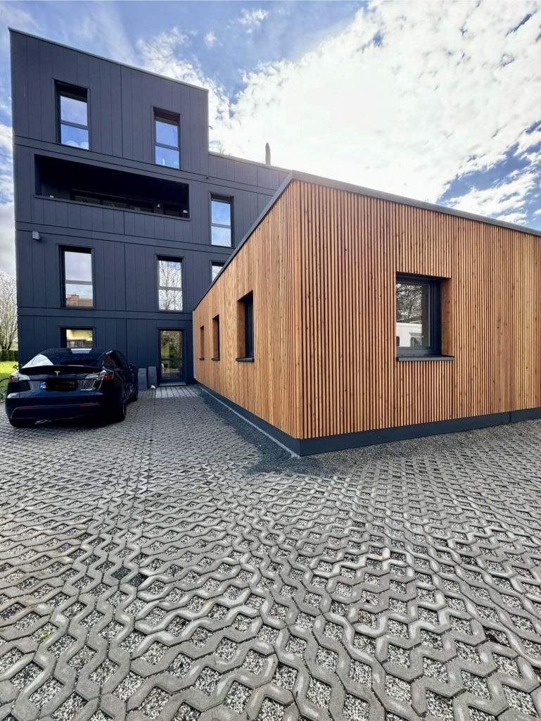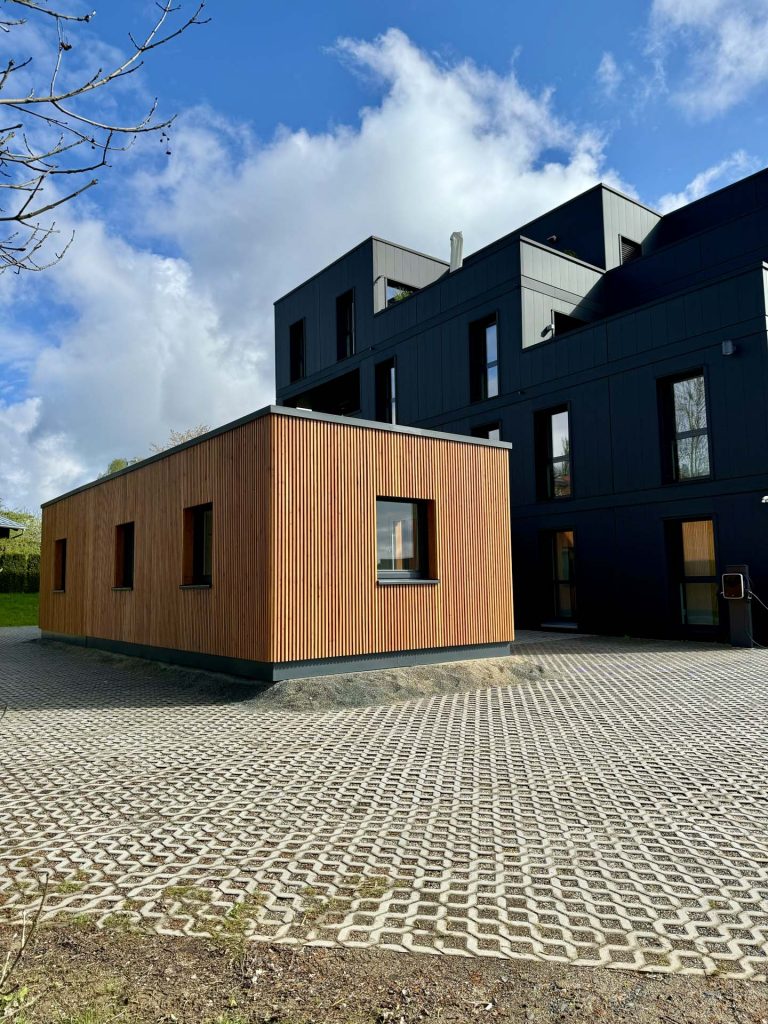 Lärchenfassade für Kontrast zum Bestand